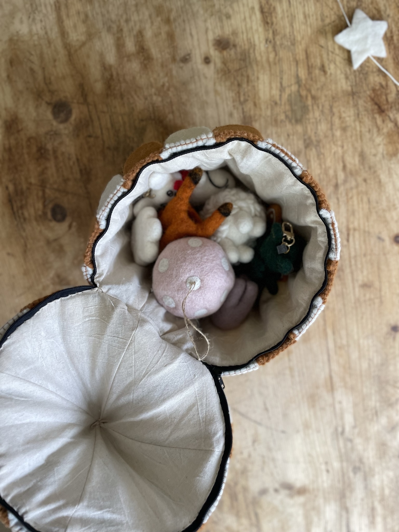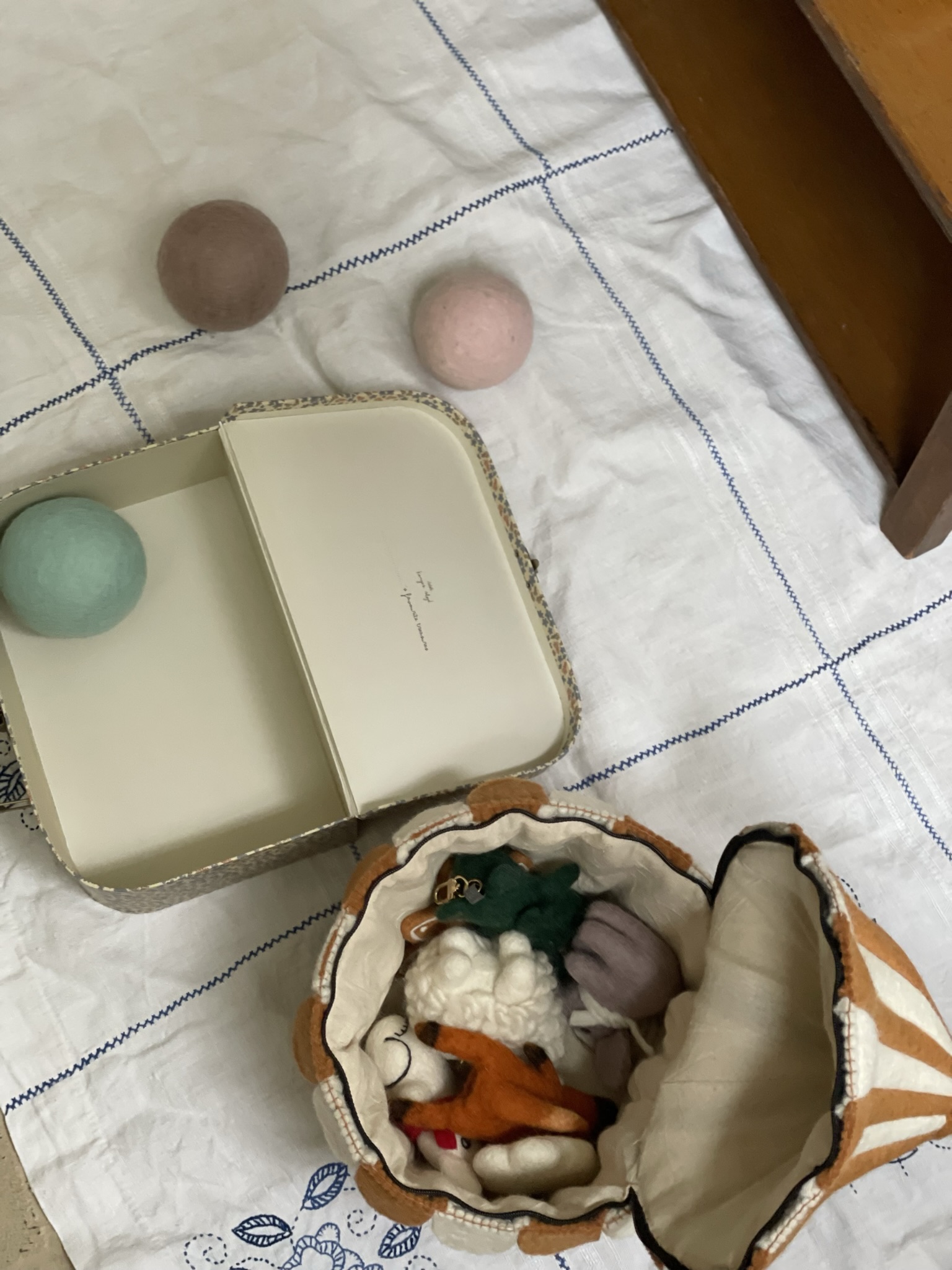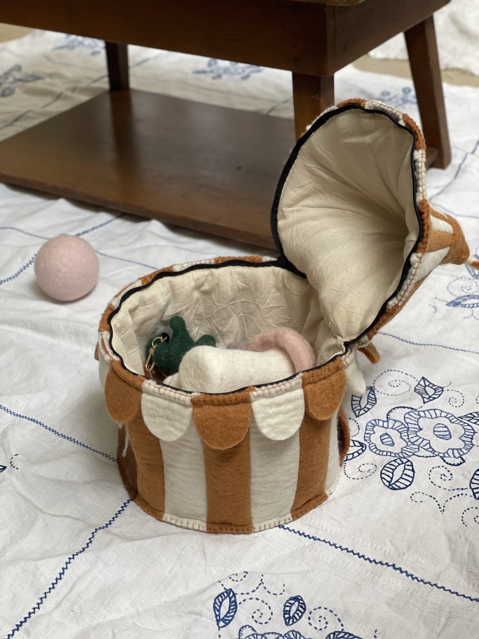 모두 100% 양모를 사용해 핸드메이드로 만든 제품입니다. 미세하게 모양이 다를 수 있습니다. 독특한 펠트만의 질감을 느낄 수 있는 인테리어 소품입니다. 작은 소품 또는 장난감 보관으로 용이하며, 인테리어 장식으로 사용하여도 아기자기한 느낌을 줄 수있는 제품입니다. 지퍼가 부착되어있어 내부에 물건이 쏟아질 염려가 없으며, 손잡이가 있어 휴대가 가능합니다.