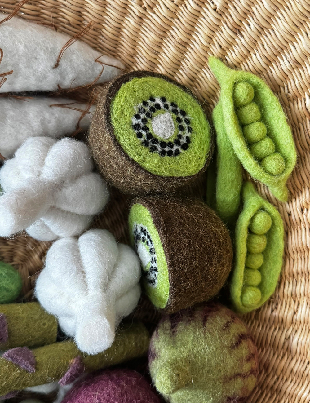 분트의 펠트 과일·야채 시리즈는 작은 손에 쏙 들어오는 사이즈와 도톰하고 부드러운 촉감, 차분한 색감으로 완성된 100% 양모 펠트 교구입니다. 장난감처럼 소리나지 않지만, 아이의 손끝과 상상력은 자연스럽게 반응하게 됩니다. 감각놀이, 소근육 발달, 역할놀이까지 하나의 교구로 유연하게 확장되는 조용한 상상력의 시작점이 되어줄 거예요.