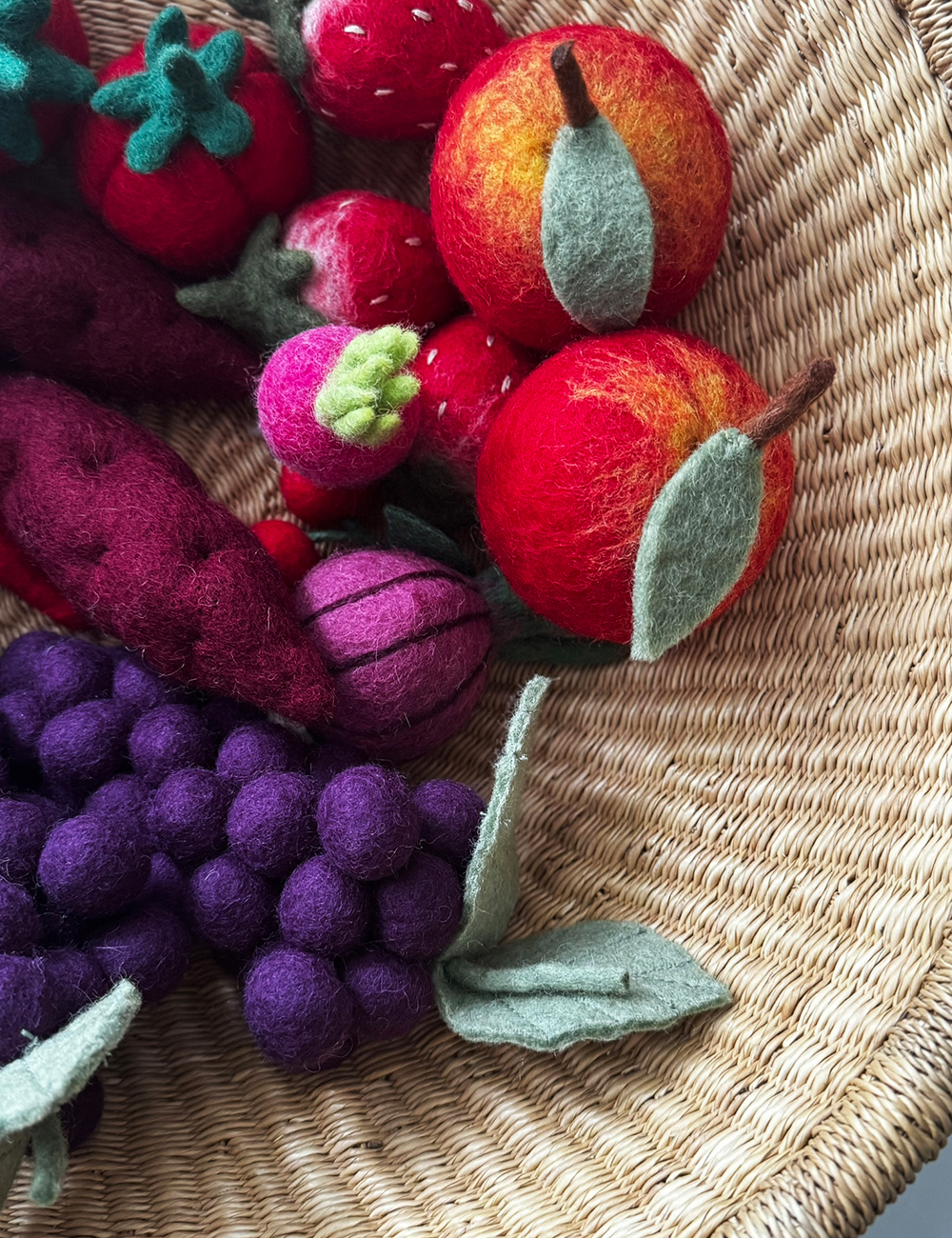 분트의 펠트 과일·야채 시리즈는 작은 손에 쏙 들어오는 사이즈와 도톰하고 부드러운 촉감, 차분한 색감으로 완성된 100% 양모 펠트 교구입니다. 장난감처럼 소리나지 않지만, 아이의 손끝과 상상력은 자연스럽게 반응하게 됩니다. 감각놀이, 소근육 발달, 역할놀이까지 하나의 교구로 유연하게 확장되는 조용한 상상력의 시작점이 되어줄 거예요.