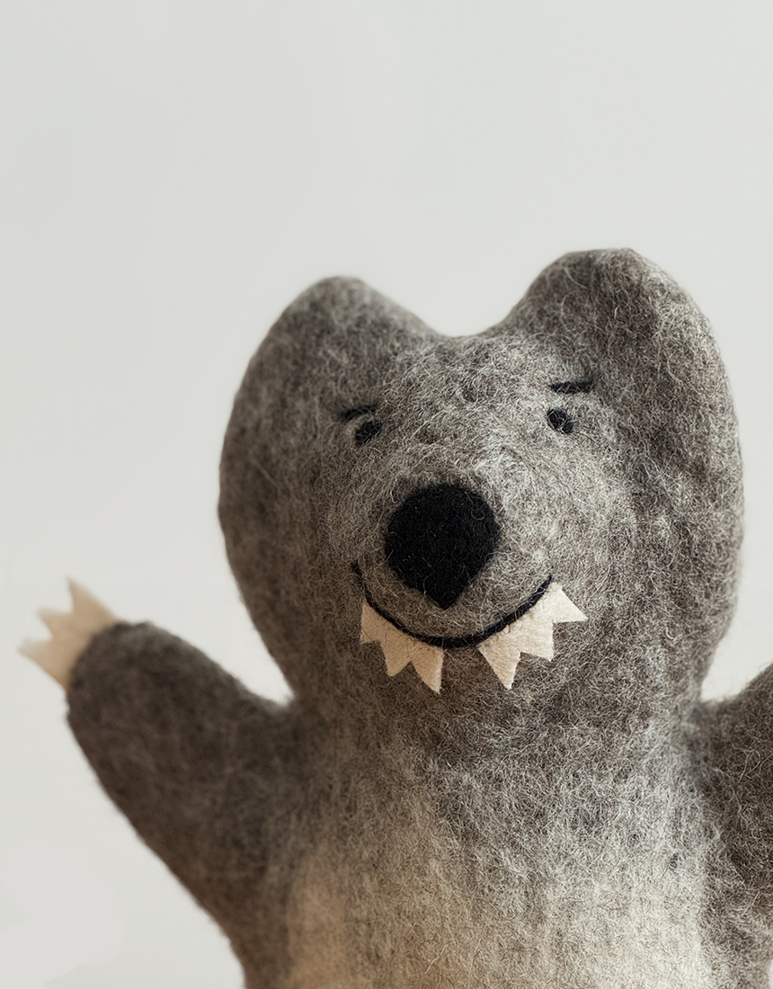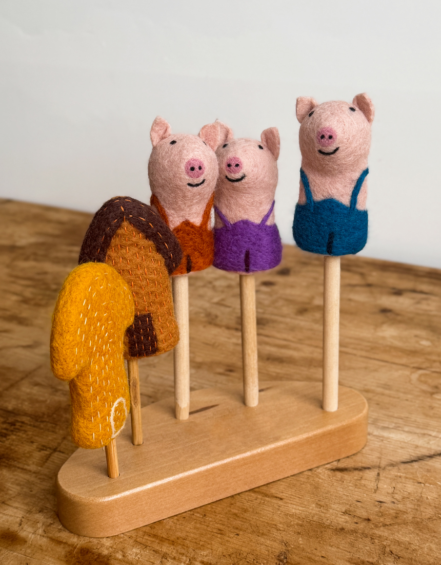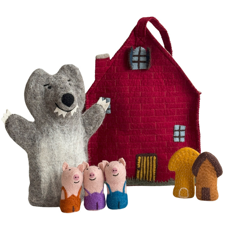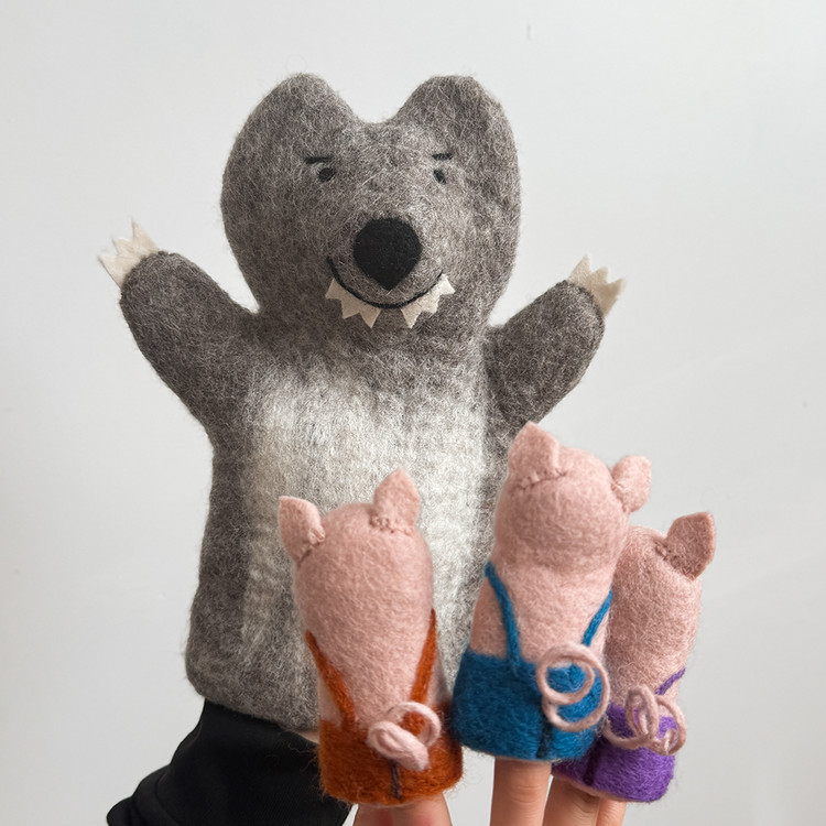 부드럽고 따뜻한 100 % 울 펠트에 AZO Free 염색을 더해 돼지 삼형제와 허당 늑대를 표현했고, 막내돼지의 튼튼한 벽돌집은 가방으로 완성시켰습니다. 모든 바느질·자수 공정은 숙련 펠트 작가가 한 땀 한 땀 직접 진행했습니다. 아이는 물론, 부모도 함께 스토리텔링·역할극을 즐기며 창의력·언어·감정 표현 능력을 동시에 키울 수 있어요.